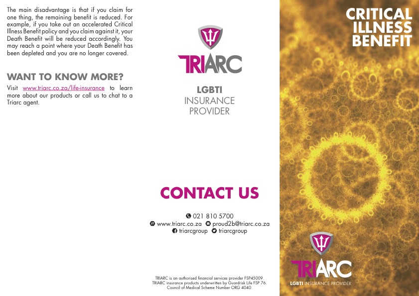 Triarc is a new insurance company that primarily targets the LGBTI market. We designed their product brochures for Life Insurance and Medical Aid.